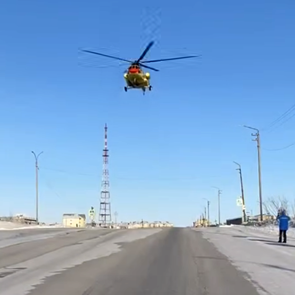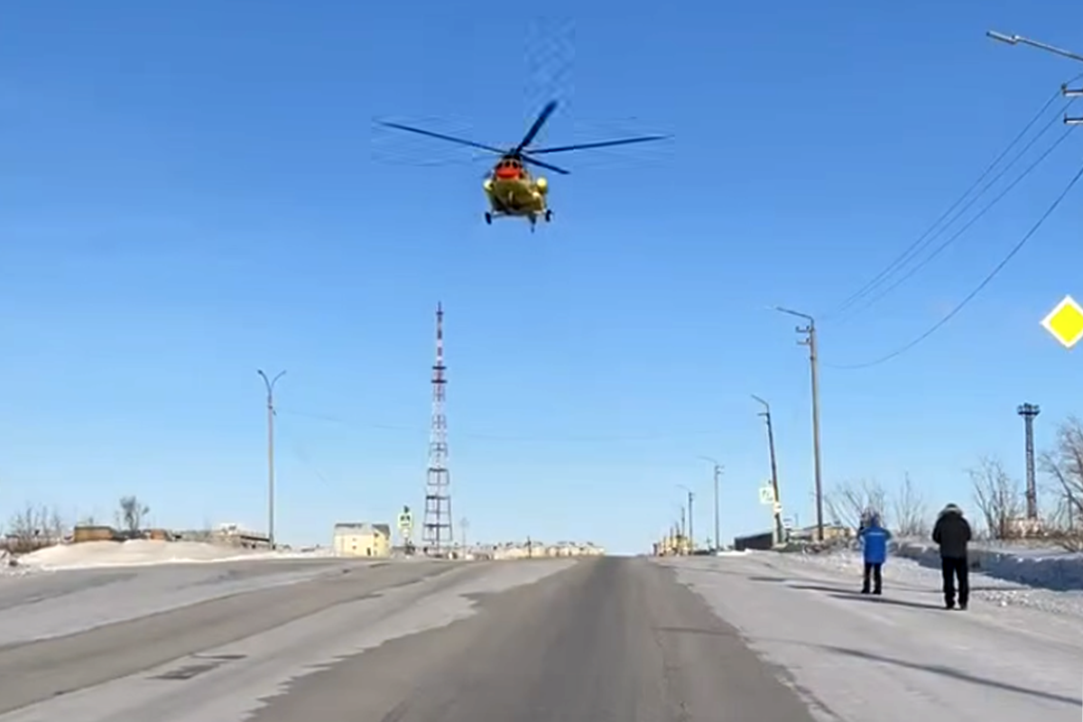 В Воркуте вертолет санавиации сел на трассу, чтоб доставить пациентку в больницу