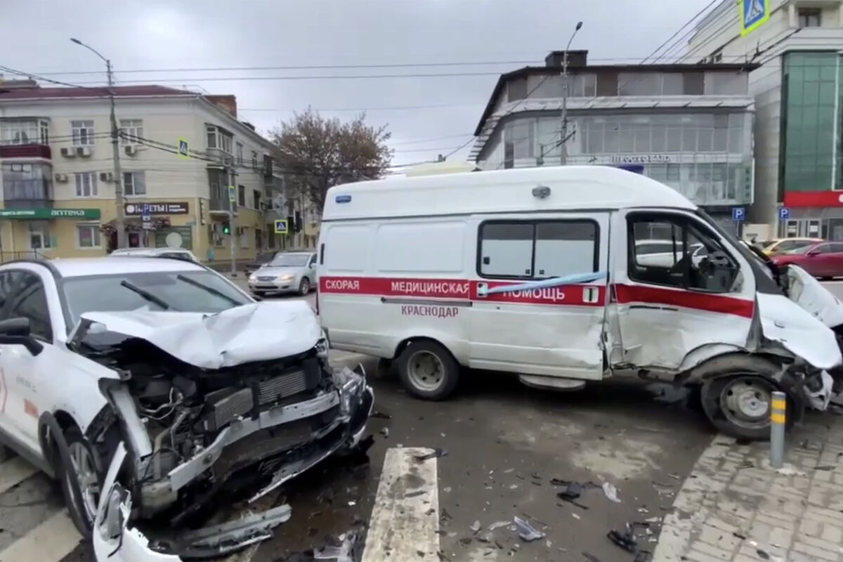 Автомобиль столкнулся с машиной скорой помощи на перекрестке Северной и Базовской улиц в Краснодаре. Об этом сообщает местная полиция.