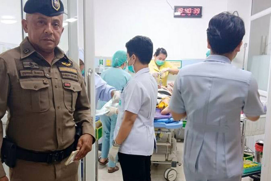 Женщину нашли лежащей лицом вверх в луже крови. Она была опознана как 53-летняя Юлия Бондаренко. У пострадавшей диагностировали травму головы, а также ссадины на правом боку, руках и ногах. Ее доставили в больницу Патонга, затем перевели в другое медучреждение на Пхукете.