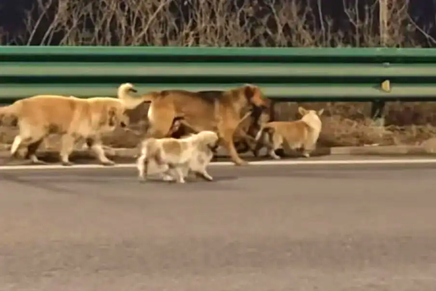 Очевидцы заметили животных 16 марта возле скоростной автомагистрали Чаншуан: собаки шли вдоль дороги, а позже их также видели на полях неподалеку. Фотографии животных быстро разошлись в интернете, вызвав широкий отклик.