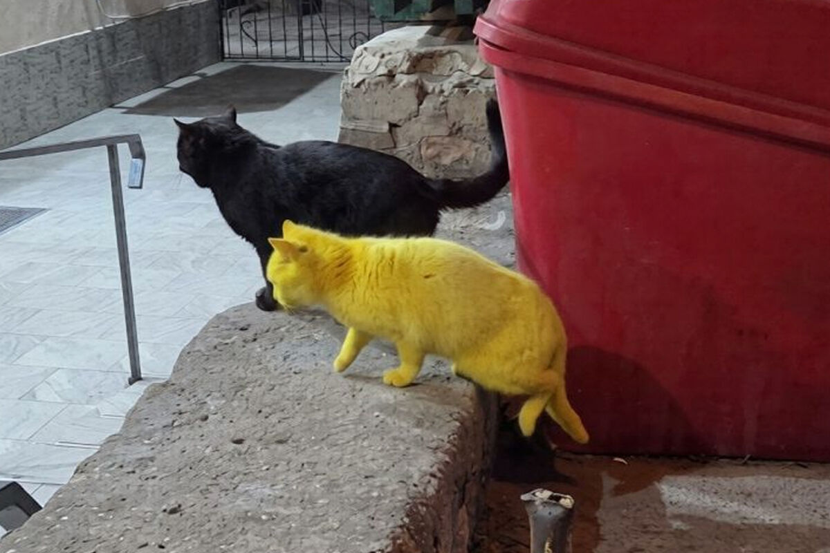 В Крыму обнаружили кота, которого покрасили в желтый цвет. Об этом сообщает «Крымское информационное агентство».
