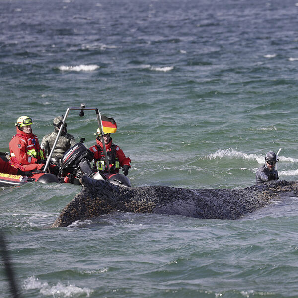 В ночь на 23 марта 10-метровый кит запутался в сетях и застрял на песчаной отмели побережья Любекской бухты. Его заметили прохожие. Попытки спасти животное долго не давали результатов. Однако спасателям удалось откопать песок перед китом так, чтобы ему не приходилось поворачиваться. В ночь на 27 марта млекопитающее освободилось и с тех пор «блуждало» по Балтийскому морю. Однако потом оно еще два раза застревало на отмели и сейчас находится в Висмарском заливе на западе Балтийского моря.