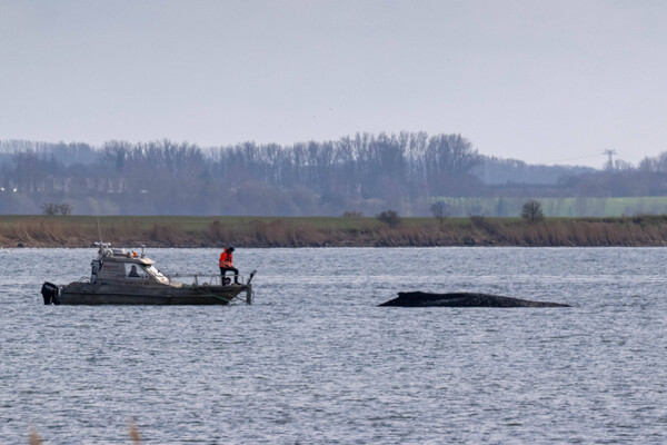 В статье говорится, что сотрудники экстренных служб продолжают орошать кита водой, в том числе, чтобы проверить жив ли он. На этом фоне местный министр окружающей среды Тилль Бакхаус заявил о прекращении попыток спасти животное — не из-за отсутствия денег, а из-за его плохого здоровья и отсутствия перспектив.
