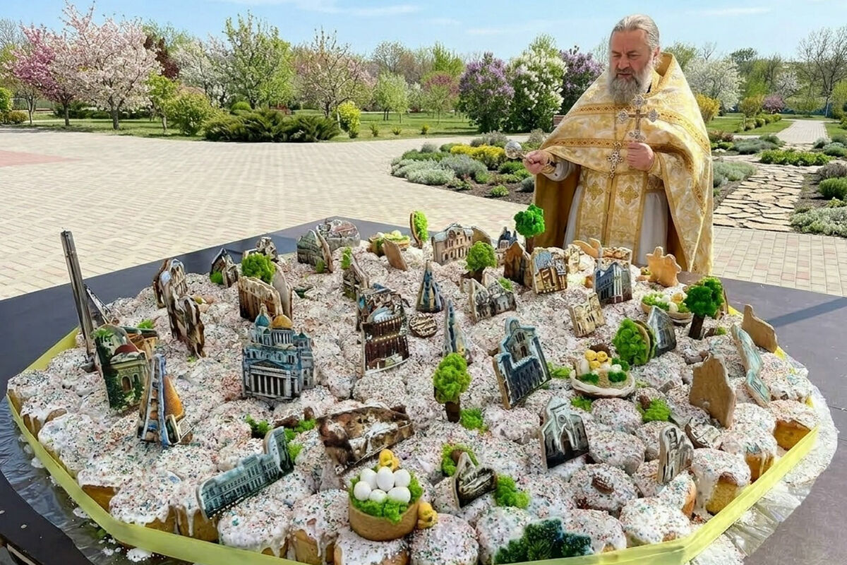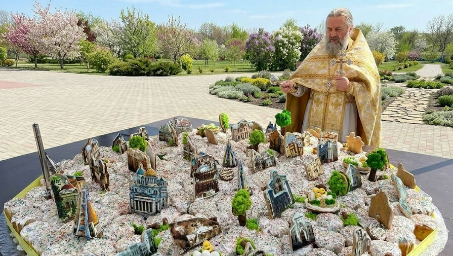 В Крыму испекли и освятили 600-килограммовый кулич в виде карты полуострова