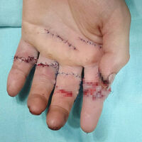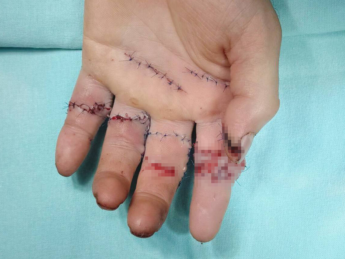 Хирурги реплантировали пациенту указательный палец, восстановив артерии, вены и нервы. На среднем, безымянном пальцах и мизинце провели реваскуляризацию и реиннервацию. Также медики наложили швы на большом пальце и восстановили сухожилия сгибателей.