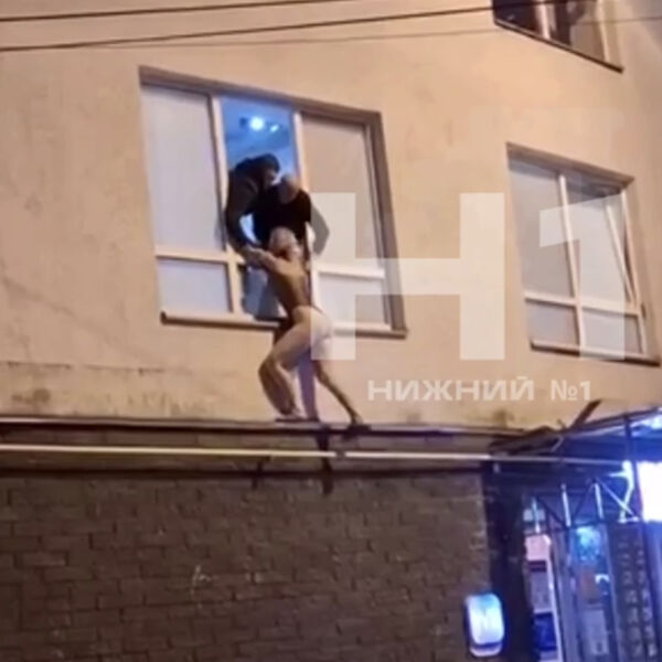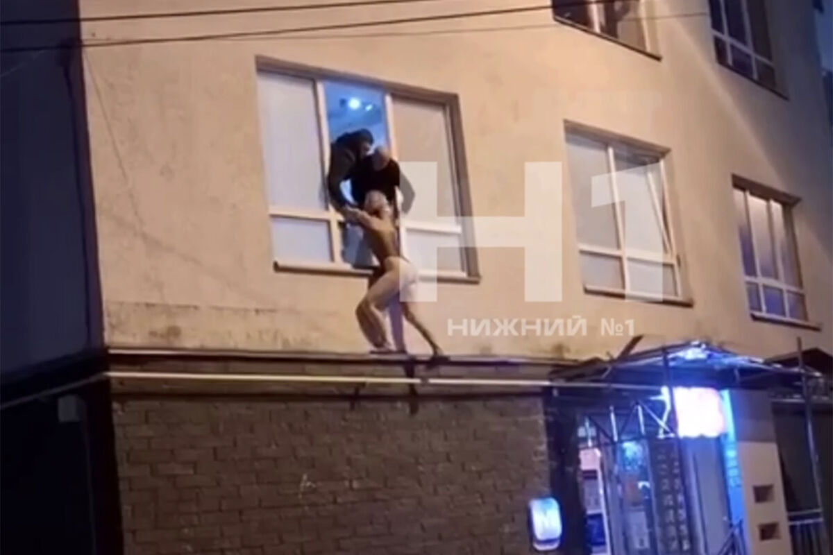 Во время рейда одна из девушек попыталась сбежать. На кадрах с места заметно, как она стоит на узком подоконнике со стороны улицы и пытается отбиться от правоохранителей. По данным канала, она попыталась таким образом сбежать. При этом на ней было только черное боди.