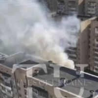 Столичные каналы опубликуют кадры пожара в Голосеевском районе Киева. Предполагается, что это горит квартира стрелка.