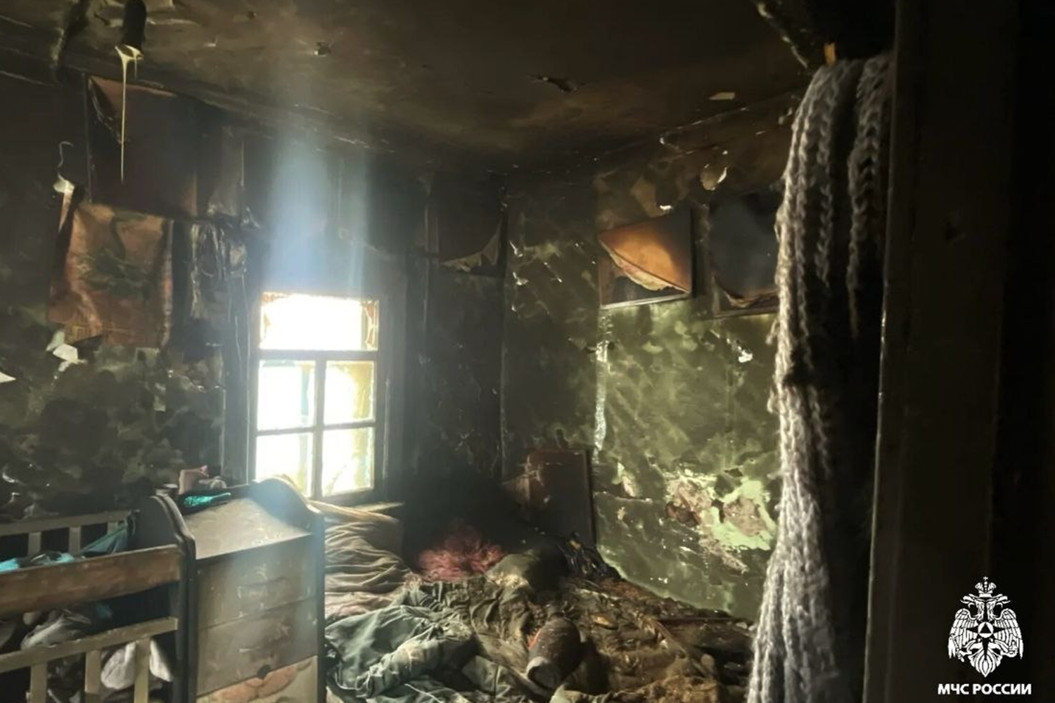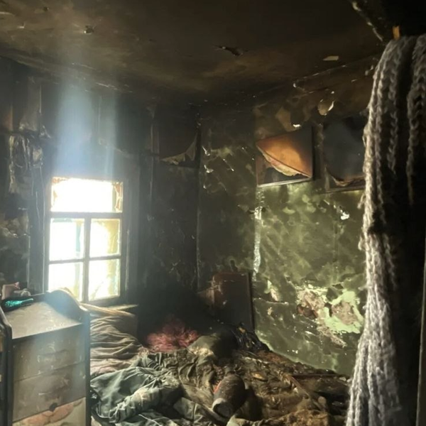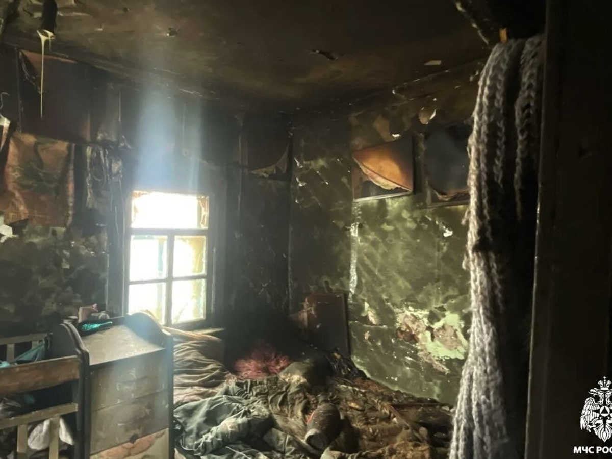 На момент прибытия пожарных из входной двери шел густой черный дым. Внутри горели две детские двухъярусные кровати. Пожар распространился по площади около 30 квадратных метров. Его ликвидировали. На фото с места происшествия видно, что внутри комнаты практически полностью выгорела обстановка.
