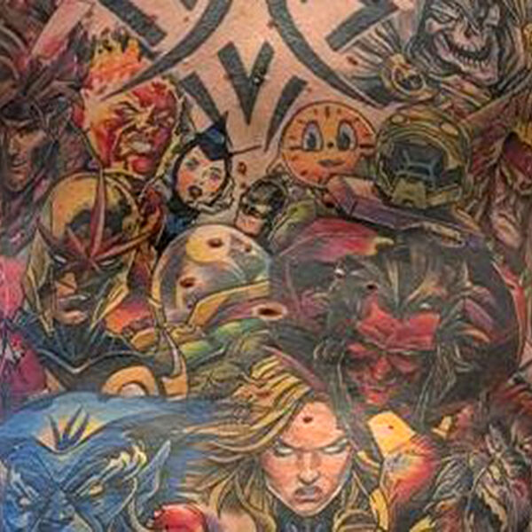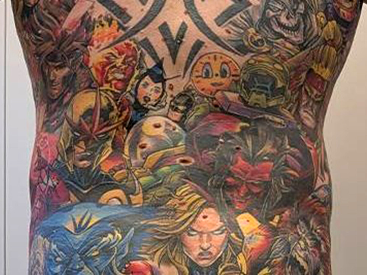 Изначально мужчина планировал разделить тело на две тематические зоны — героев на одной ноге и злодеев на другой. Однако места быстро стало не хватать, и татуировки постепенно распространились на спину и другие части тела.