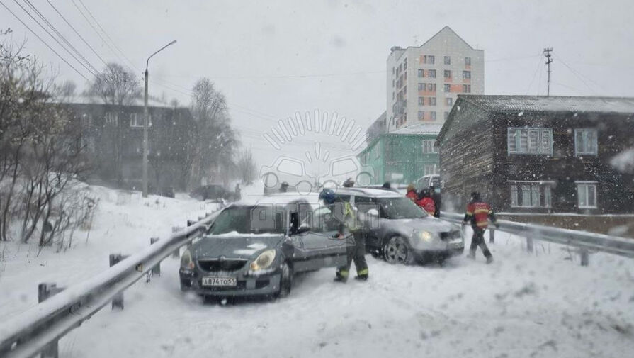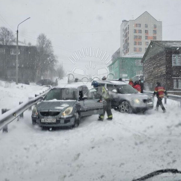 В Мурманске скорая попала в массовое ДТП из-за снежного шторма