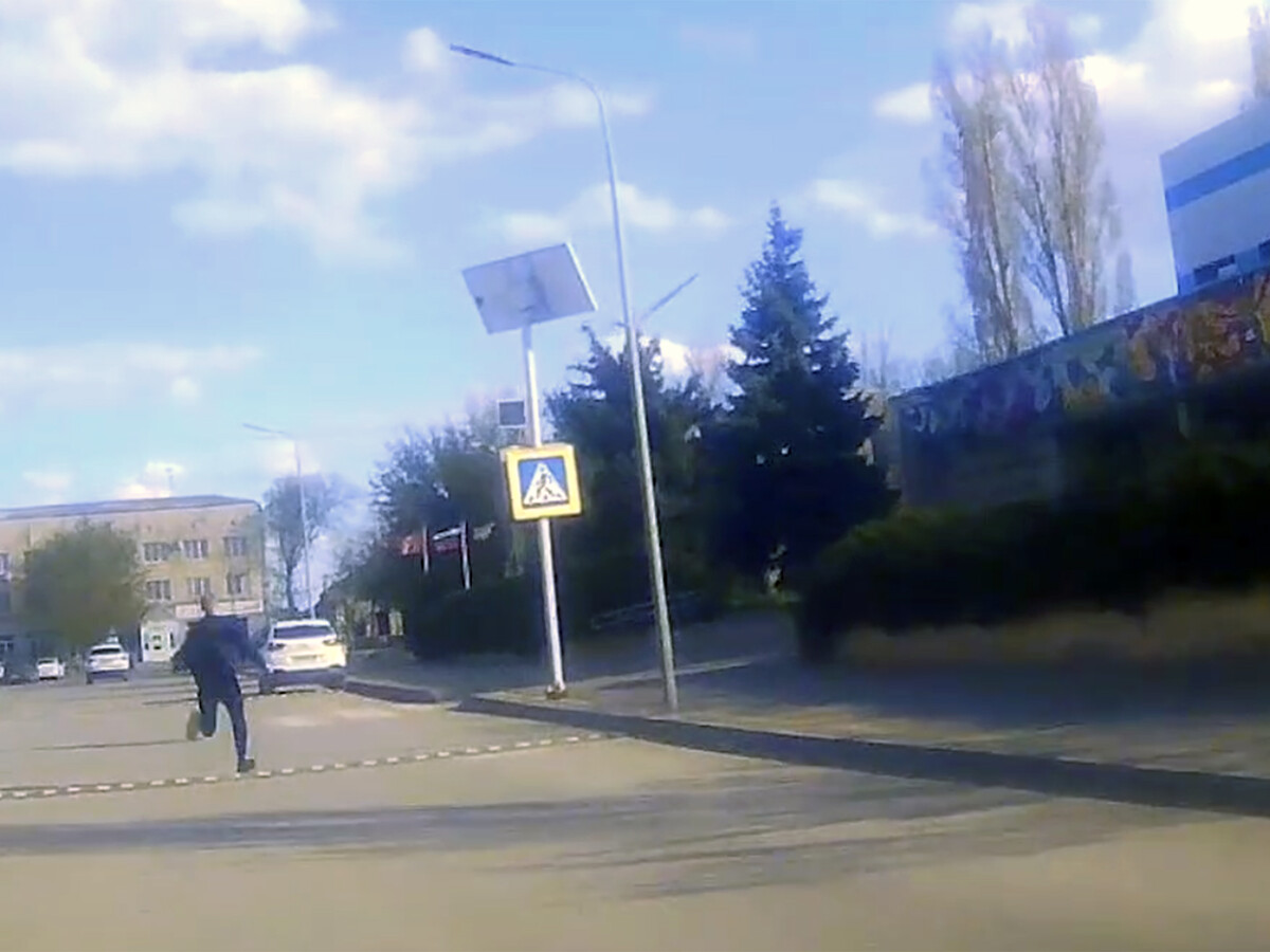 Инцидент произошел в городе Ленинск. Очевидцы засняли, как мужчина быстро бежал по улице, несмотря на приближающуюся машину. За ним, с разрывом в десяток метров, следовал человек в форме сотрудника правоохранительных органов.