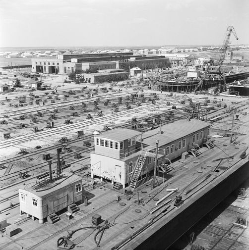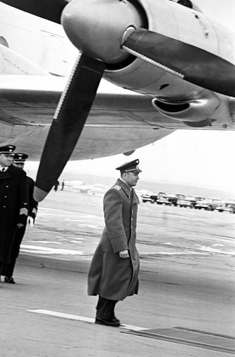 Здание аэровокзала аэропорта Внуково со стороны летного поля, 1951 год Строительство аэропорта Внуково, 1956 год Встреча первого космонавта СССР Юрия Гагарина на Внуковском аэродроме, 1961 год
