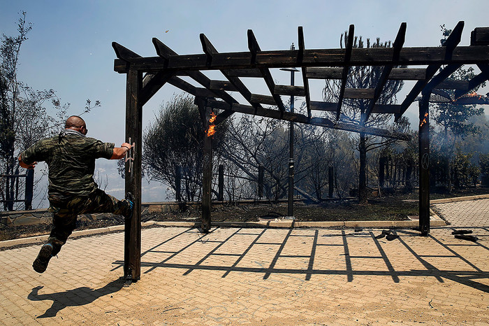Лесные пожары охватывают территорию Греции. Ситуация усугубляется штормовым ветром, который способствует распространению огня.