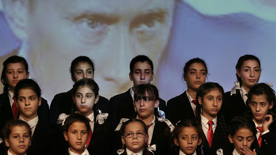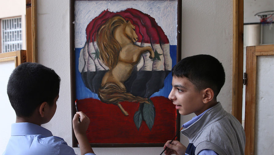 Рисунок ребенка-сироты из семьи офицера сирийской армии, погибшего в результате военных действий Учащиеся школы для детей-сирот из семей офицеров сирийской армии, погибших в результате военных действий, во время музыкального концерта Учащиеся школы для детей-сирот из семей офицеров сирийской армии, погибших в результате военных действий, во время музыкального концерта Председатель комитета Госдумы РФ по вопросам собственности Сергей Гаврилов в окружении детей из школы для детей-сирот из семей офицеров сирийской армии, погибших в результате военных действий Член комитета Совета Федерации РФ по обороне и безопасности Дмитрий Саблин, председатель комитета Госдумы РФ по вопросам собственности Сергей Гаврилов и член комитета Госдумы РФ по информационной политике, информационным технологиям и связи Александр Ющенко (слева направо) в окружении детей из школы для детей-сирот из семей офицеров сирийской армии, погибших в результате военных действий Учащиеся школы для детей-сирот из семей офицеров сирийской армии, погибших в результате военных действий, во время музыкального концерта Урок рисования во дворе школы для детей-сирот из семей офицеров сирийской армии, погибших в результате военных действий Урок рисования во дворе школы для детей-сирот из семей офицеров сирийской армии, погибших в результате военных действий Урок рисования во дворе школы для детей-сирот из семей офицеров сирийской армии, погибших в результате военных действий Отец Арсений (слева) проводит урок рисования во дворе школы для детей-сирот из семей офицеров сирийской армии, погибших в результате военных действий. Второй справа — председатель комитета Госдумы РФ по вопросам собственности Сергей Гаврилов Бюст Хафеза Асада во дворе школы для детей-сирот из семей офицеров сирийской армии, погибших в результате военных действий Подарки от российской делегации во дворе школы для детей-сирот из семей офицеров сирийской армии, погибших в результате военных действий