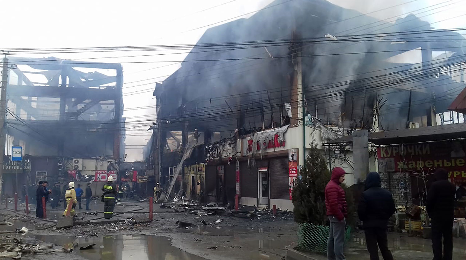 Утром в Кизляре загорелся ТЦ «Планета Люкс». Здание находится в районе автостанции города и центрального рынка. Площадь пожара достигла 8 тысяч «квадратов». Очаг возгорания обнаружен на крыше здания. Позднее в мэрии Кизляра уточнили, что сгорел еще один расположенный рядом торговый центр «Союз», также огонь повредил соседние постройки. Из-за происшествия на дорогах появились пробки, однако городской общественный транспорт и расположенная рядом автостанция работают в обычном режиме. Причиной пожара в торговом центре дагестанского города Кизляра могла стать неисправная электропроводка, сообщает ТАСС со ссылкой на пресс-службу мэрии города. Пострадавших нет, так как в здании на момент возгорания не было людей.