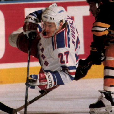 В то же время «Рейнджерс» после Кубка Стэнли постепенно деградировал, к 96-му году навсегда позабыв, что такое плей-офф. И при первых же признаках слабого сезона со стороны Ковалева его мгновенно поменяли в «Питтсбург» на бастовавшего чеха Петра Недведа, Криса Тэймера и Шона Пронгера.