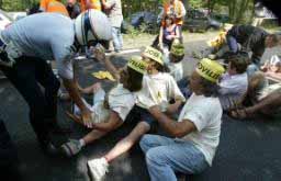 Группа восседавших на трассе людей скандировала лозунги в поддержку известного антиглобалиста Жозе Бовэ, в настоящее время мотающего срок во французской тюрьме. Бовэ известен тем, что в свое время выращивал пшеницу и рис из генетически измененных зерен, а также тем, что создал группировку фермеров, которые выступают против крупных сельскохозяйственных компаний. Кстати, во Франции уже раздаются мнение, что «сидячая забастовка» только повредила рейтингу довольно популярного Бовэ, так как на такую «священную корову» как «Тур де Франс» руку поднимать нельзя.