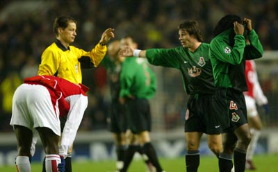 Чем ближе к стадиону, тем больше у них поводов для веселья. Все просто великолепно: объявление команд соперниц, видео-табло, акустика. Во всем этом нам есть чему поучиться у англичан. По-другому и быть не могло. Стадион приветствует своих любимцев, и особенная доза теплоты достается недавно оправившемуся от травмы Патрику Вьейра.