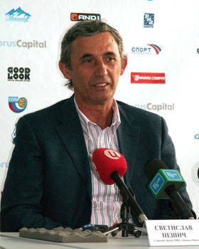 В пятницу в баскетбольном дворце в Крылатском, где базируется московское «Динамо», состоялось представление общественности нового главного тренера бело-голубых Светислава Пешича. Именитый сербский специалист, чемпион мира и Европы, а также победитель Евролиги 2003 года в составе «Барселоны» появился в сопровождении генерального директора клуба Геннадия Дроздова и президента Евгения Гомельского, который взял слово первым.