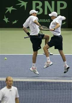 В пятницу - первый день финального матча между сборными США и России — Энди Роддик обыграл Дмитрия Турсунова в трех сетах со счетом 6:4, 6:4, 6:2, а Джеймс Блэйк — Михаила Южного - 6:3, 7:6, 6:7, 7:6. В этих условиях центр тяжести в финальной серии перемещался на парную встречу.