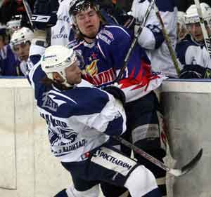 И насколько же третий период оказался отличным от первых двух! Спустя четыре минуты Валлинхеймо не сумел в ходе «навала» на свои ворота прижать шайбу, и Королев протолкнул ее за ленточку. После этого Вуйтек поменял неуверенного Синухе на Желобнюка. Опомнившиеся динамовцы тут же заработали удаление и на время заперли соперника в его зоне. Извлечь им дивидендов из этого не удалось. Но уже после того, как соперники перешли на игру в три звена, гостям удалась отличная комбинация. Получив поперечный пас от партнера, Емелеев здорово бросил под перекладину.