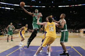 Первая четверть не предвещала столь драматической для «Лейкерс» развязки - по ее итогам команда хозяев опережала «Селтикс» ни много ни мало, а на 21 очко. Толпа знаменитостей, пришедших на матч и включавшая в себя Джека Николсона, Дензела Вашингтона, Дженнифер Гарнер, Уилла Смита, Бена Аффлека и даже Джастина Тимберлейка, была просто-таки воодушевлена.