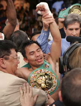 В Мекке профессионального бокса — Лас-Вегасе — на арене Mandalay Bay состоялось очередное шоу, которое увенчал бой за титул чемпиона мира в легком весе по версии WBC между филиппинцем Мэнни Пакьяо и нынешним обладателем этого чемпионского пояса американцем Дэвидом Диасом.