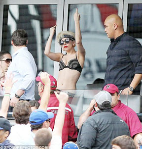 Оказывается, певица Lady Gaga увлекается бейсболом. Певица, привыкшая эпатировать публику, на сей раз шокировала спортивных болельщиков, придя на бейсбольный матч в Нью-Йорке в кожаном нижнем белье, прикрытом курткой, которую, впрочем, она вскоре сняла.