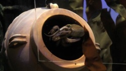 Пятимесячного осьминога, которого тоже зовут Пауль, посадил в аквариум один из смотрителей океанариума. Пока Пауль-младший совсем небольшой: его размер — всего 30 сантиметров. Осьминог сразу после переселения выбрался из глиняного сосуда и начал осматривать новое место жительства.