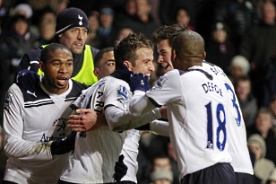Через несколько минут драматизм игры сравнялся с драматизмом пьес Уильяма Шекспира. Главный арбитр встречи Аткинсон показал красную карточку Дефо за слишком активную борьбу против Коллинза, и гости остались в меньшинстве. Однако вместо того, чтобы уйти в оборону, стараясь сохранить победный счет, «шпоры» продолжили атаковать ворота хозяев. Во многом благодаря этому гости ушли на перерыв, все еще ведя в счете. А выход Романа Павлюченко приобрел теоретические шансы, так как Реднаппа игра нападающих его команды вполне устраивала.