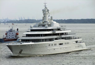 Напомним, что яхта Eclipse является теперь самой длинной яхтой в мире и достигает в длину 163 метров. На ней могут разместиться 30 гостей и 75 членов экипажа. Кроме того, на судне есть собственная подлодка, 16-метровый бассейн, который можно по желанию превратить в танц-пол, а также две взлетно-посадочные площадки для вертолетов.