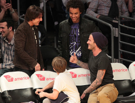 Футболист Дэвид Бекхэм и актер Том Круз были рады видеть друг друга на игре «Лос-Анджелес Лэйкерс» в Staples Centre, сообщает Sun. Оба пришли на матч с сыновьями: Круза сопровождал усыновленный 16-летний Коннор, Бекхэма — 12-летний Бруклин. Папы приветствовали друг друга и болтали, а ребята, улыбаясь, общались между собой.
