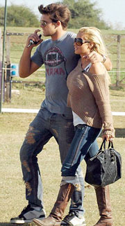 Ну а сейчас Кэти и Леандро вновь находятся в Аргентине, правда, не в Буэнос-Айресе, а в предместье города Кордоба, где на днях посетили коневодческую ферму. Для такой деревенской обстановки англичанка оделась соответствующим образом: грубые коричневые сапоги, достаточно простой на вид пуловер и, конечно же, джинсы. Впрочем, цена подобного наряда, надо полагать, составляет не одну тысячу фунтов.