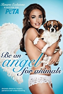 Тамара снялась для всемирной организации по защите прав животных (PETA) вместе со своим псом Бастером. Девушка, на которой из одежды были лишь кружевные трусики да пара ангельских крыльев, держит своего любимца на руках. А на шее у Бастера одет кружевной воротничок. Такое фото полностью соответствует девизу кампании — «Будь ангелом для животных».