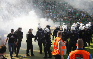 Предполагалось, что после некоторой задержки матч будет возобновлен, но после получасовой паузы по совету полиции встречу было решено прекратить. «Обе команды и судьи хотели продолжить матч, но блюстители правопорядка заявили, что не смогут гарантировать безопасность», — рассказал главный арбитр матча Томас Айнваллер.