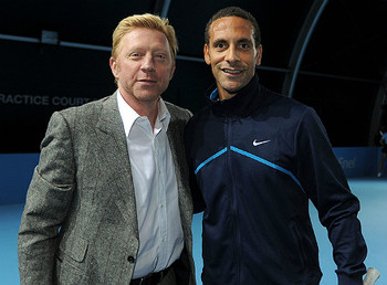 Защитник «Манчестер Юнайтед» и сборной Англии Рио Фердинанд посетил O2 Arena, где в эти дни проходят баталии итогового турнира АТР. Во время визита на арену Фердинанд, в частности, провёл тренировку с легендарным немецким теннисистом Борисом Беккером.