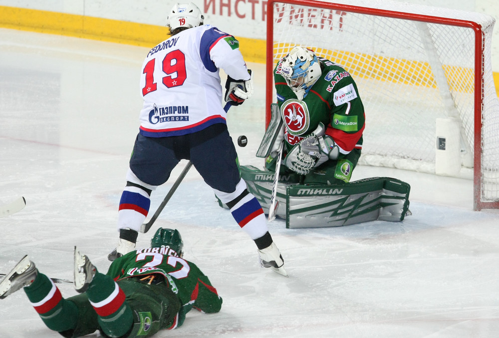 Вот только армейцы не собирались сдаваться и сравняли счет. Оборона казанцев временами представляла собой проходной двор, а первое же удаление реализовал Денис Денисов. А затем включенный в расширенный список кандидатов на шведский этап Евротура Евгений Артюхин в меньшинстве убежал от защитников и переиграл Касутина.
