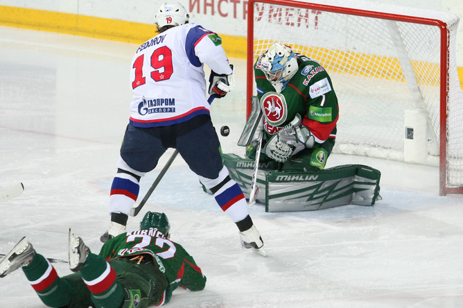 Самый яркий матч игрового дня состоялся в Казани, где состоялось возвращение на лед Максима Соколова, который стал одним из героев противостояния «Ак Барса» и СКА. Начало матча получилось на славу. Уже на второй минуте едва не забил пропустивший последнюю игру Федор Федоров, который красиво обыграл защитника, но бросил прямо в Ивана Касутина. Ответ хозяев стал голевым: из-под соперника красиво бросил Константин Глазачев, застав врасплох Илью Ежова. Глазачев в предыдущих матчах не играл, однако Владимир Крикунов вернул его после «сухого» поражения от «Северстали».