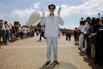 Вообще данное произведение известного британского комика Саши Барона Коэна считается весьма оскорбительным для казахов, о чем не раз говорили как официальные лица, так и простые граждане Казахстана. В частности, в так называемом «гимне» из фильма о Казахстане поется, как «лидирующей стране по продажам навоза».