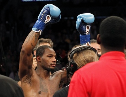 Тот упал на пол, схватившись за ключицей с гримасой боли на лице. После переговоров с Хопкинсом рефери остановил бой.