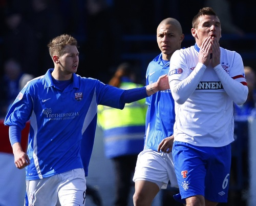 Угроза грандиозных финансовых убытков чиновников не испугала. В итоге «рейнджерам» пришлось состязаться не с «Селтиком», и даже не с «Данди Юнайтед», а с весьма экзотическими коллективами. Например, «Стерлинг Альбион».