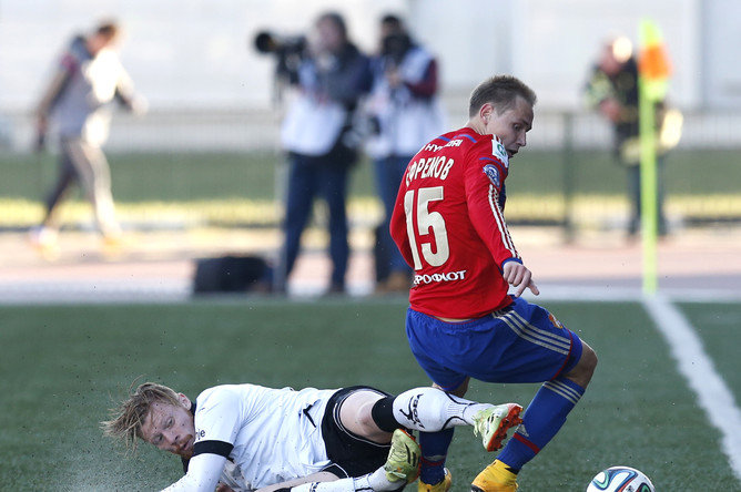 Еще одна быстрая атака прошла у ЦСКА. Пришлось Рыкову страховать своих горе латералей и фолить на убегающем Тошиче.