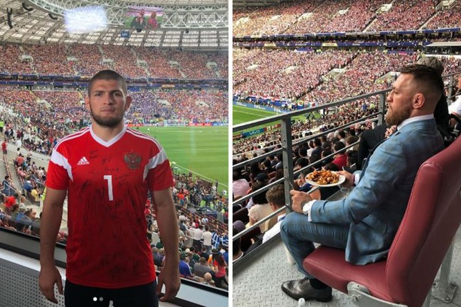 На финале мундиаля Нурмагомедов облачился в преподнесенную футболку и болел за Поля Погба и его сборную Франции. На этом же матче присутствовал и Макгрегор, который назвал себя гостем Владимира Путина, сфотографировался с президентом России и окрестил его «одним из величайших лидеров современности». Ирландцу досталось комфортное место: во время игры он не только внимательно следил за действиями игроков, но и решил подкрепиться.