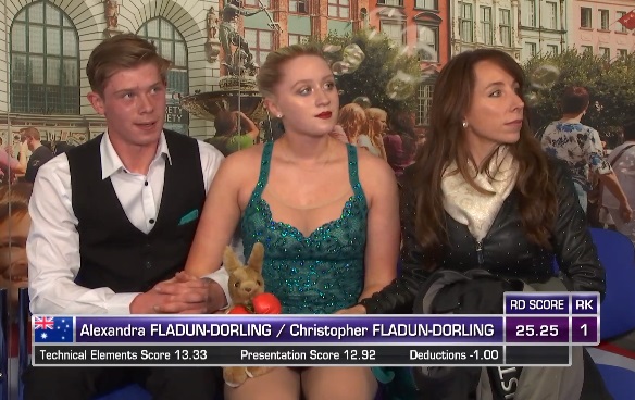 Начинают соревнования австралийцы: Александра Фладун-Дорлинг и Кристофер Фладун-Дорлинг. Брат с сестрой. Девушке только 13 лет, хотя так и не скажешь.