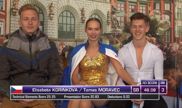 46,08 зарабатывают Корникова с Моравцем и выходят на третье место. Это их лучший результат в сезоне, как и ожидалось.