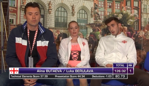 Грузинский дуэт Алина Бутаева и Лука Берулая начинает третью разминку.