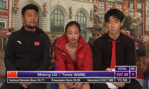 Мотонг Лью и Тианзе Ванг из Китая выступают первыми.