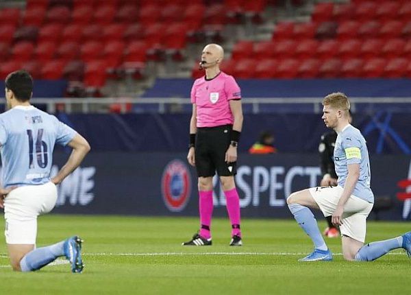 Перед матчем Лиги чемпионов игроки «Манчестер Сити» и «Боруссии» также преклонили колено, однако российская бригада арбитров осталась на ногах, что выбивалось из общей картины.