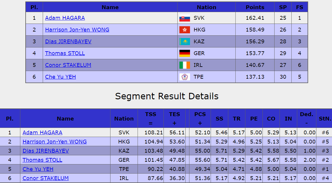 Оценка южнокорейца Сийона Ли за произвольную программу — 149,19 балла, а по сумме — 229,14. Это промежуточное первое место с большим отрывом! И фигурист это полностью заслужил.