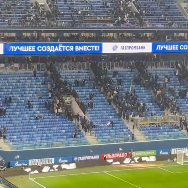На 60-й минуте матча активный сектор поддержки сине-бело-голубых свернул флаги и баннеры и ушел со стадиона, оставив на трибунах простых болельщиков, которые пришли посмотреть игру.